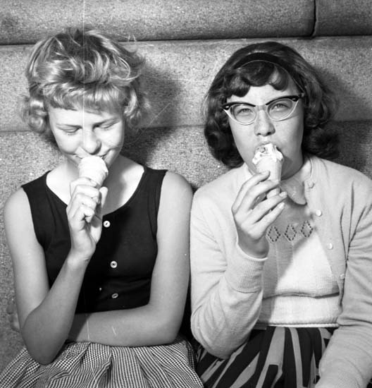Enligt notering: "Två flickor med glass d 3/7 -58".