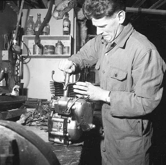 Enligt notering: "Motorgrabben! 1956. Kalle Dahlgren ger blommor U-a 8/2 57".
