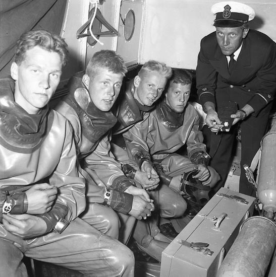 Enligt notering: "Marinens grodmän (Röjdykare) aug. 1955".
