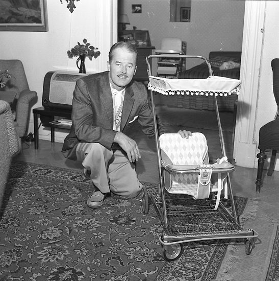 Enligt notering: "Svenskamerikan, barnvagnsmiljonär juli 57".