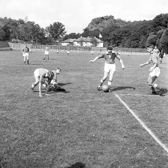 Enligt notering: "Fotboll Svane-Munkedal Rimnersvallen 28-8-55".
