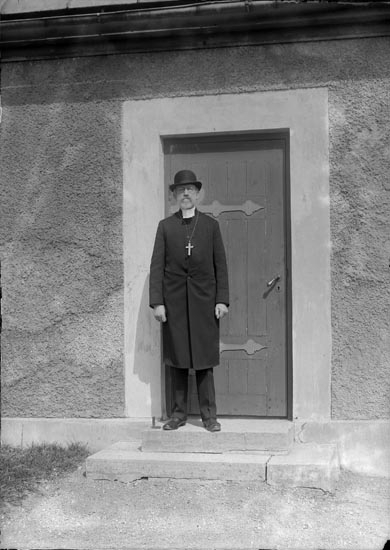 Enligt fotografens anteckningar: "Biskop Rohde omkring år 1900 o. Foss kyrka. Taget af fotograf Selma Sahlberg".