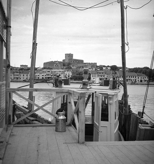 Tidigare notering: "Marstrand. Spårvagnen vid östra kajkanten."