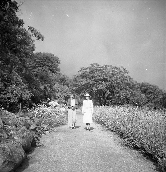 Kvinnor på promenad i trädgården, Morlanda Säteri