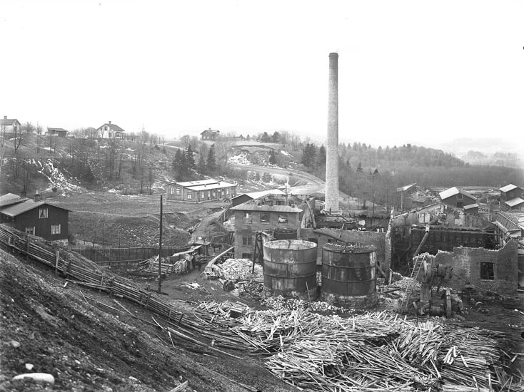 Enligt fotografens noteringar: "Eldsvådan vid Munkedals fabrik."