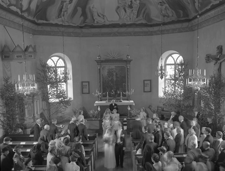 Text som medföljde bilden: "1948. No 12. Kyrkbröllop Olof Norborg, Foss."