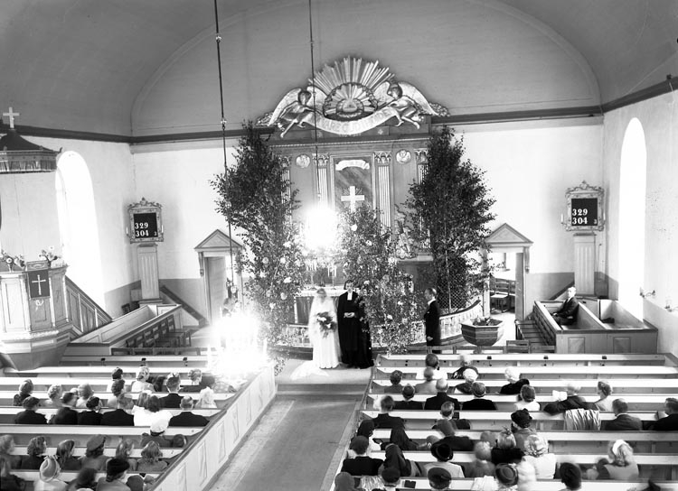 Text som medföljde bilden: "1949. No 20. Kyrkbröllop Krokstad. Pastor Bengt Nordblom."