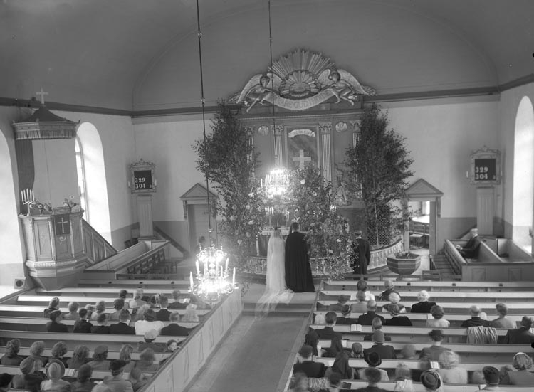Text som medföljde bilden: "1949. No 20. Kyrkbröllop Krokstad. Pastor Bengt Nordblom."