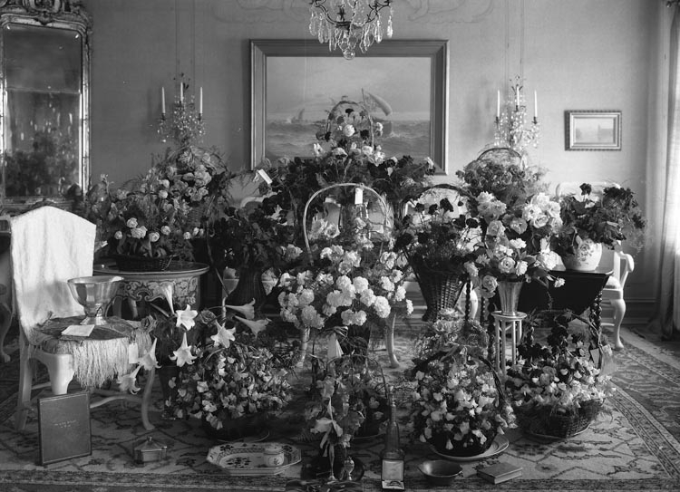 Text som medföljde bilden: "1934. 14. Troligen Fru Bildts 50-årsdag."