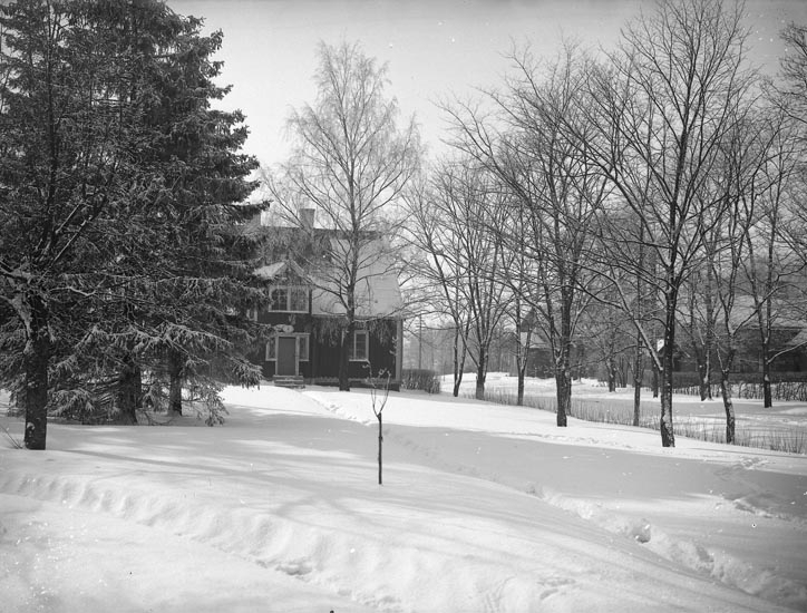 Enligt medföljande noteringar: "Omkring 1918, troligen vid Munkedals kontor och sjukstugan, ej numera."