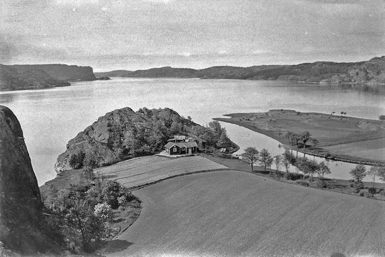 Enligt fotografens noteringar: "K. Nr:76. Vid Munkedals Hamn. Utsikt öfver Saltkällefjorden detta till fin.....? finnes 10x15 plåt".