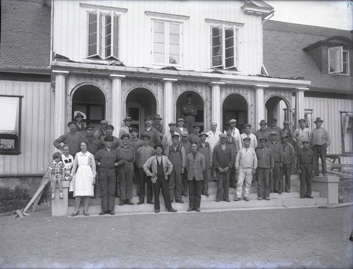 "1929. 87. Munkedals arbetare vid reparationer på Munkedals Herrgård."