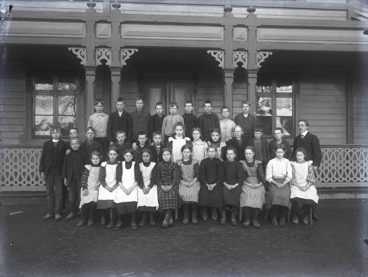 "1924. Skollärare A. Karlsson, Munkedal, omkring 1924. Fråga om ej Frida Friberg är här. Lärare i Lycke skola från år 1945."