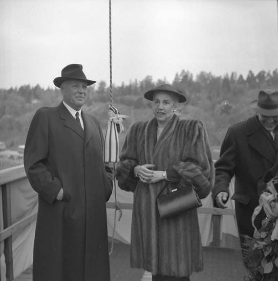 Titel: Sjösättning och dop av 120 M/T Bittencourt Sampaio. Kvinnan på bilden är gudmor till fartyg 121 M/T Amazonas som döptes samtidigt.