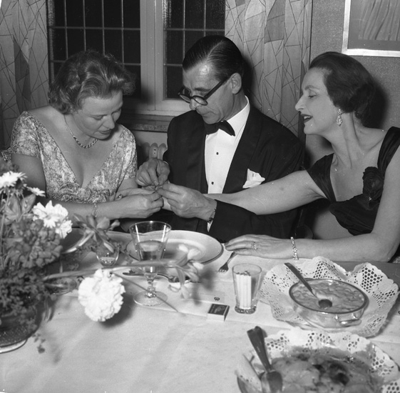 Sjösättningsmiddag för fartyget 161 M/T Maridal. Fartygets gudmor får sitt smycke.