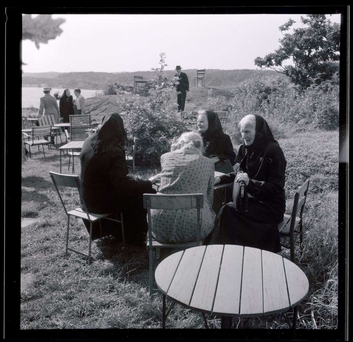 Äldre kvinnor som sitter och pratar i augustisolen på Skansberget i Uddevalla