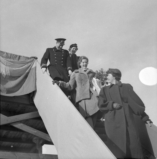 Sjösättning av 123 M/S Monica Smith. Flickan på fotot är fartygets gudmor.