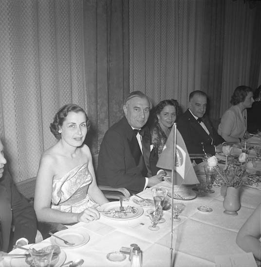 Sjösättningsmiddag för fartyg 120 M/T Bittencourt Sampaio. I bildens mitt syns Uddevallavarvets grundare och dåvarande VD Gustaf B. Thordén. Till vänster om honom sitter fartygets gudmor.