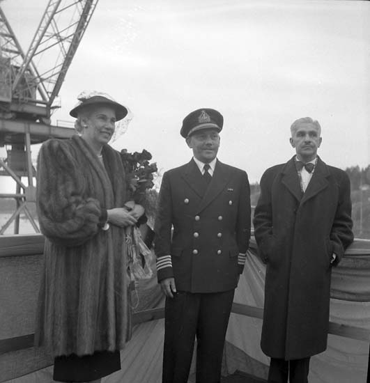 Sjösättning och dop av 120 M/T Bittencourt Sampaio. Kvinnan på bilden är gudmor till fartyg 121 M/T Amazonas som döptes samtidigt.