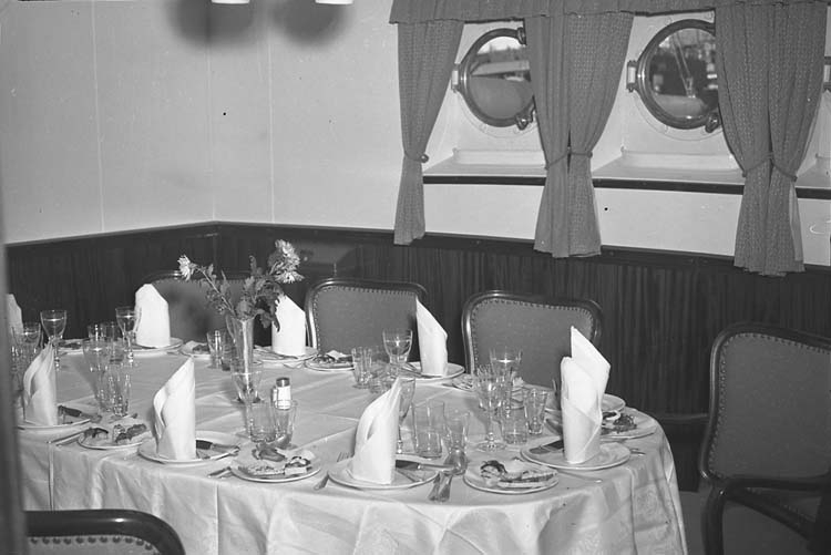 Provtur med fartyg 110 M/S Dragon, matsalsinteriör.