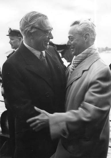 Gustaf B. Thordén och fartygets beställare vid sjösättning och dop av fartyg 113 M/T Islas Georgias.