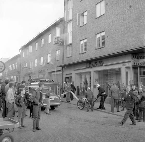 Enligt notering: "Eftermiddagsbränder i U-a. Hamngatan, Ritz, Högströms, Jörnstedts 7/10 -59".
