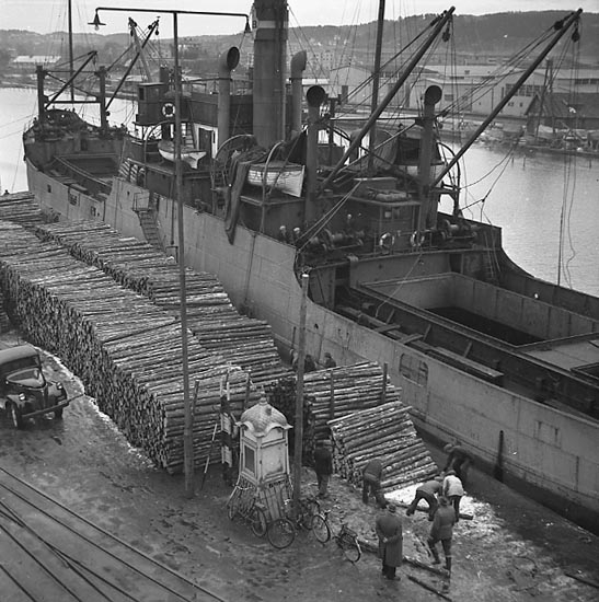 Enligt notering: "Pitproppslastning i Hamnen Jan 1950".