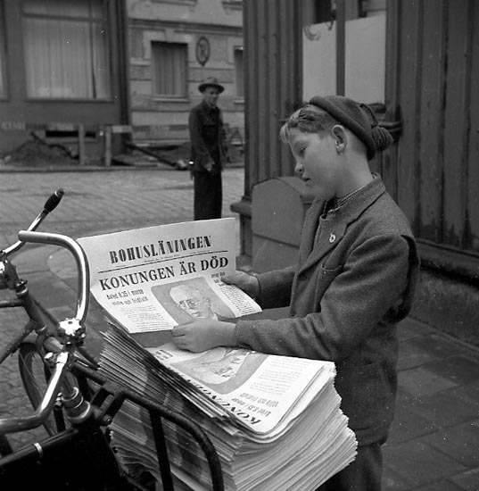 Titel: Tidningen Bohusläningens första sida skriver "Konungen är död"
