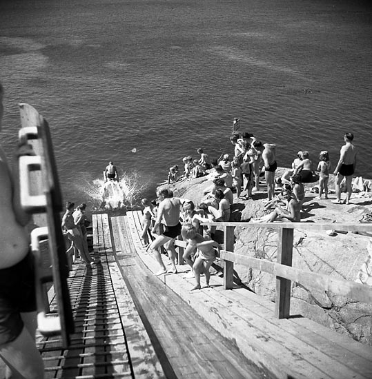 Enligt fotografens notering: "Badande vid Skeppsviken 16/7 1947. ".