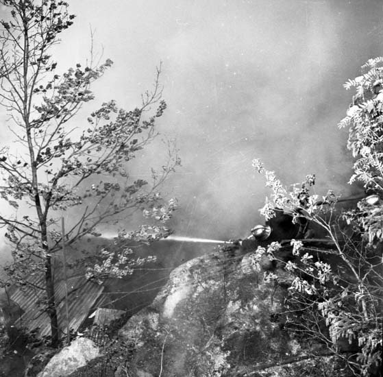 Eldsvåda i Dalaberg, i norra delen av Uddevalla, juni 1958