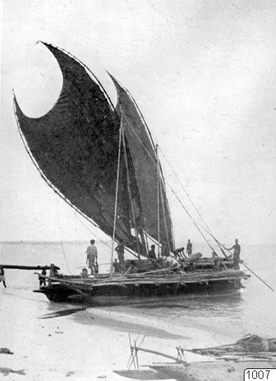 Kanoter vid Mailu-ön. Fraktar virke från Nya Guineas fastland. W.J.V. Saville: In Unknown New Guinea. London 1926. Mellan pp. 32 o 33.