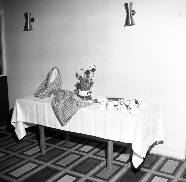 Enligt notering: "Utställning av elevarbeten på Yrkesskolan (nya) 8/5 -60".
