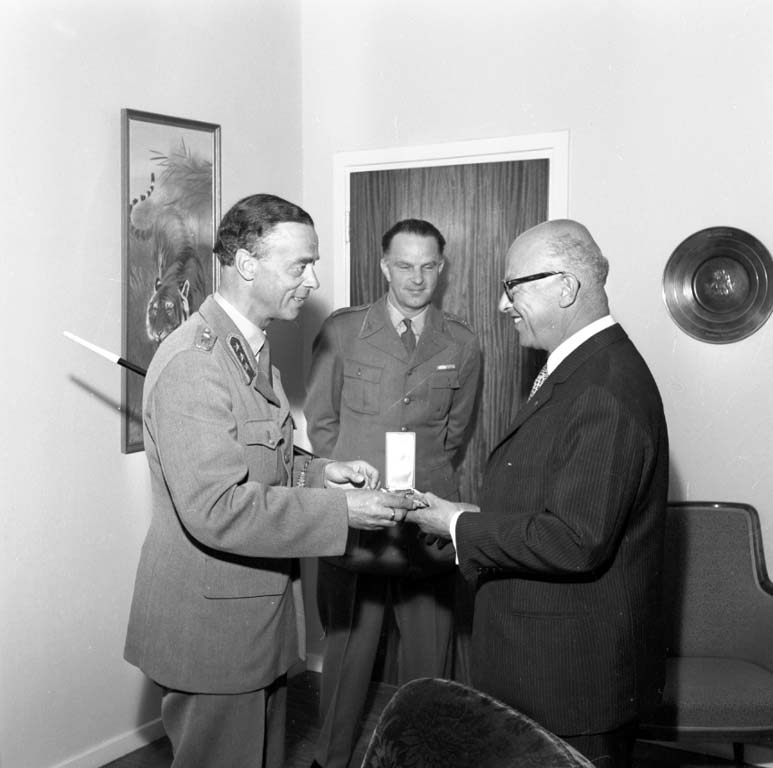 Direktör Schwartzman och direktör Ullberg får hemvärnsmedalj den 7 juni 1960