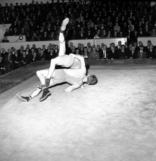 Titel: Enligt notering: "Landskampsbrottning Norge - Sverige 1/2 -59".