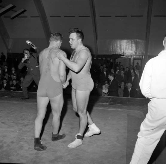 Titel: Enligt notering: "Landskampsbrottning Norge - Sverige 1/2 -59".