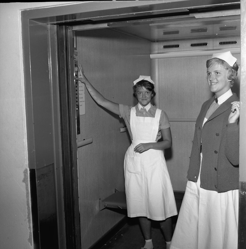 Sjukhuspersonal fast i hiss