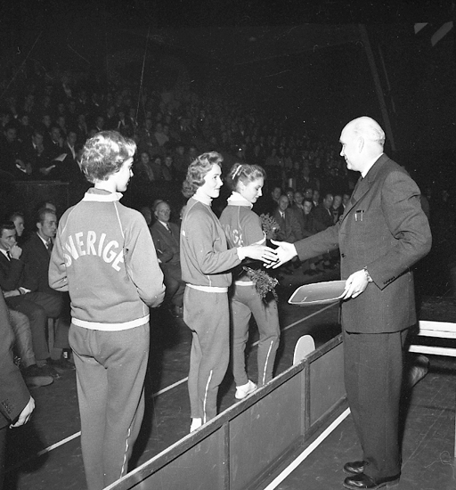 Prisutdelning i bordtennislandskamp Sverige – Tyskland 1957 i Uddevalla