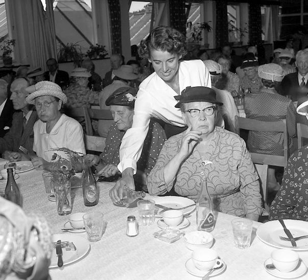 Enligt notering: "Pensionärer i Tiger Restaurangen Aug 57".