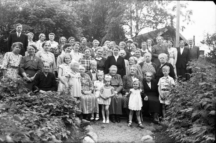 Enligt fotografens anteckningar: "1953, No 1. Nr 16. Munkedals kyrkliga syförening i Karlsberg". (Hjalmar Karlssons bostad)."