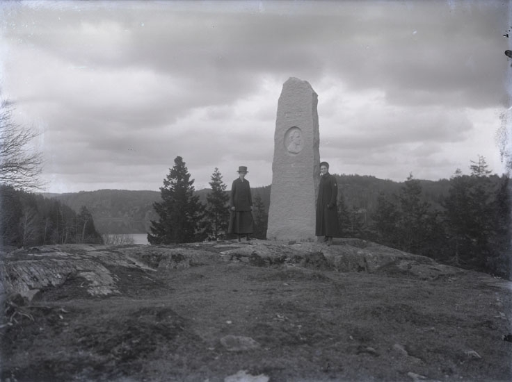 "Tagit 1923. Syster Hilda o. Selma Sahlberg från Jälund (?) Stjänby (?) vid Pontus Wiknersstenen. 1923. Kaserna. Lyckebo. Fam."