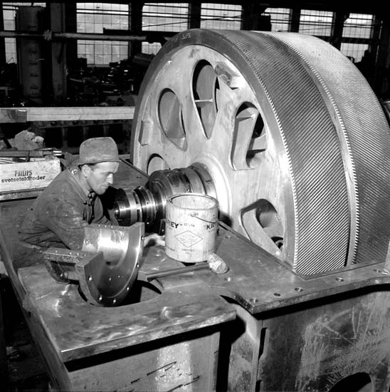 Målning av huvudmaskin. Mannen på bilden är Åke Hedström.