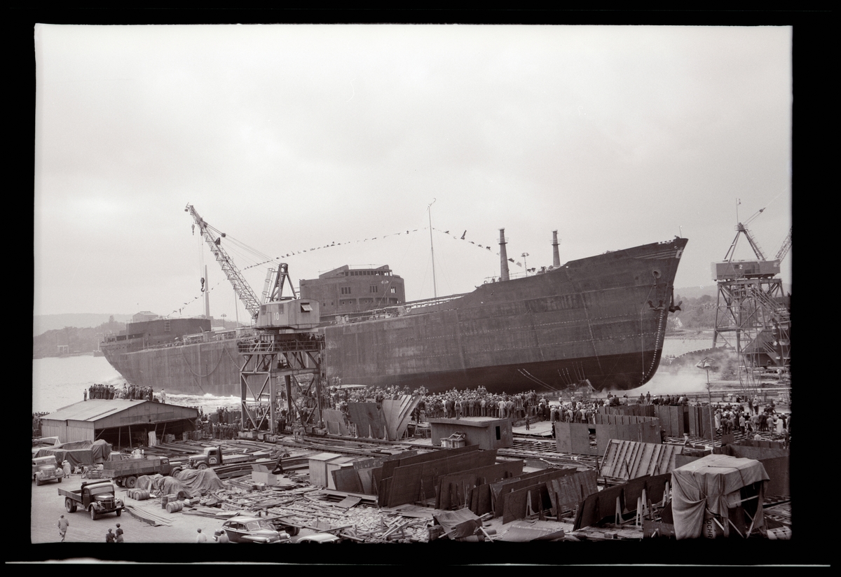 Dop och sjösättning av fartyget 133 T/T Josefina Thordén. Det var Sveriges första stora tanker.