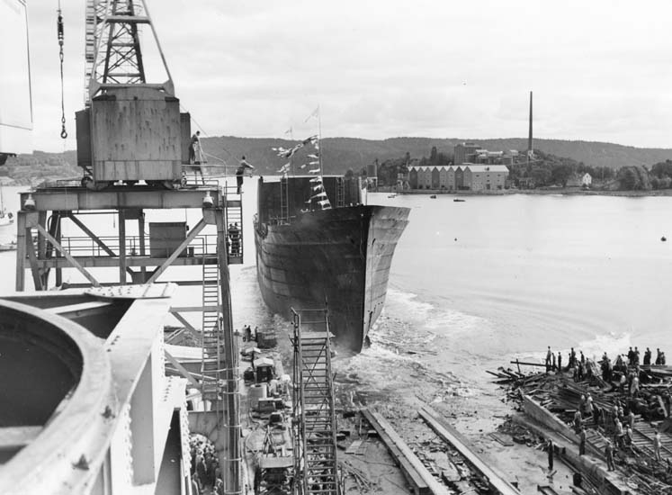 Sjösättning av 114 M/S Hjördis Thordén.