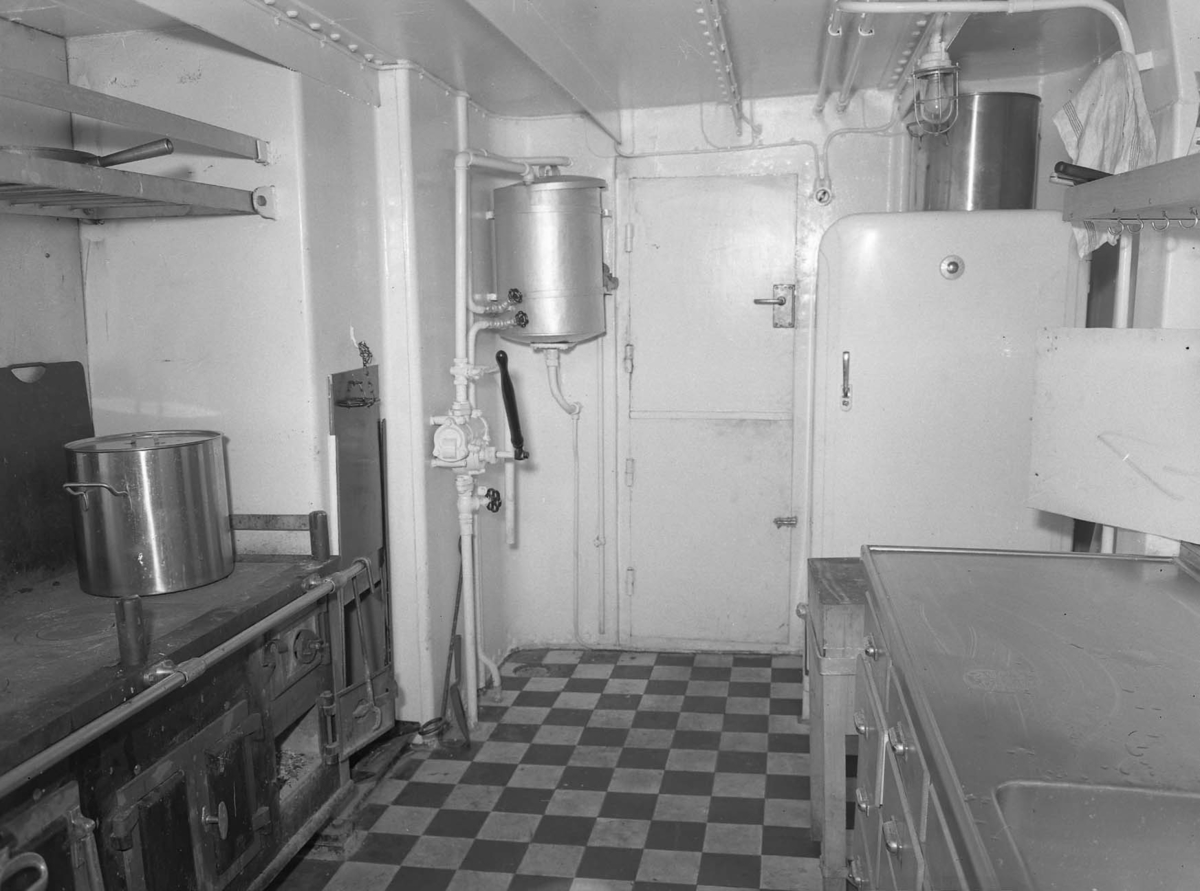 Inredning från fartyg 116-119, troligen från 116 S/S Vorkuta PT 57. Bilden visar köksutrymmet.