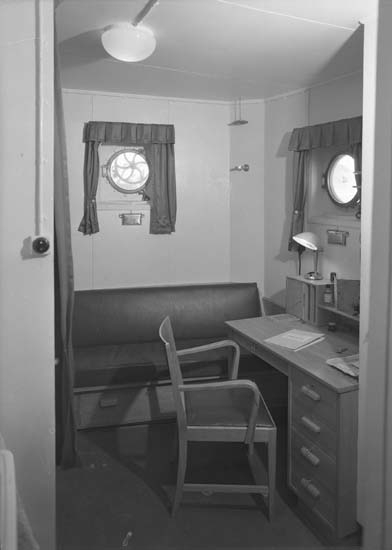Inredning från fartyg 116-119, troligen från 116 S/S Vorkuta PT 57. Bilden visar en hytt.