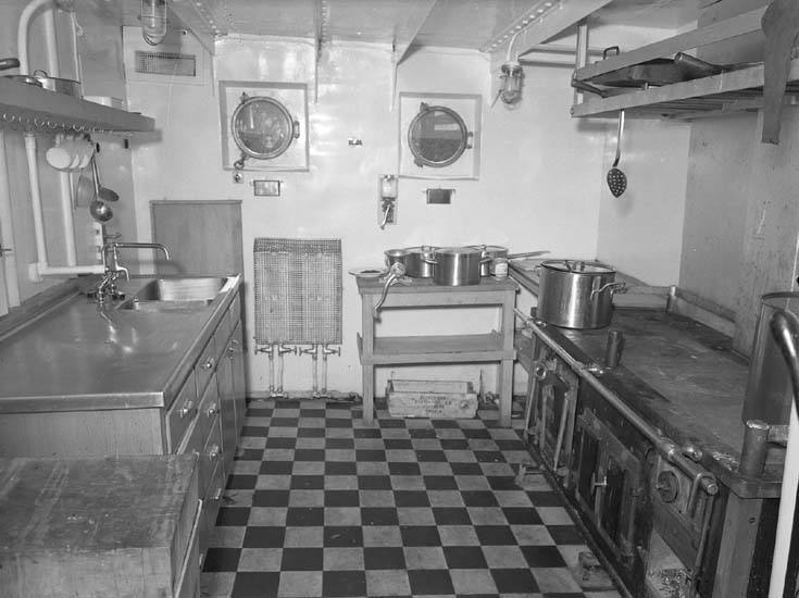 Inredning från fartyg 116-119, troligen från 116 S/S Vorkuta PT 57. Bilden visar köksutrymmet.