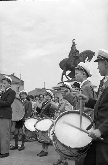 Gossmusikkåren på väg till kyrkan via Kungstorget, Uddevalla