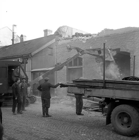 Enligt notering: "Gamla folkets hus rivs med grävmaskin 7/2 57".