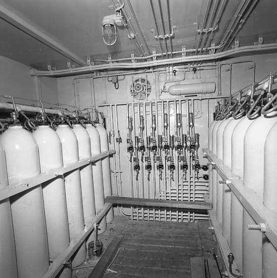 Bilder från utrymmen på fartyg 116-119, troligen från 116 S/S Vorkuta PT 57. CO2-gas för släckning av brand i maskinrum.