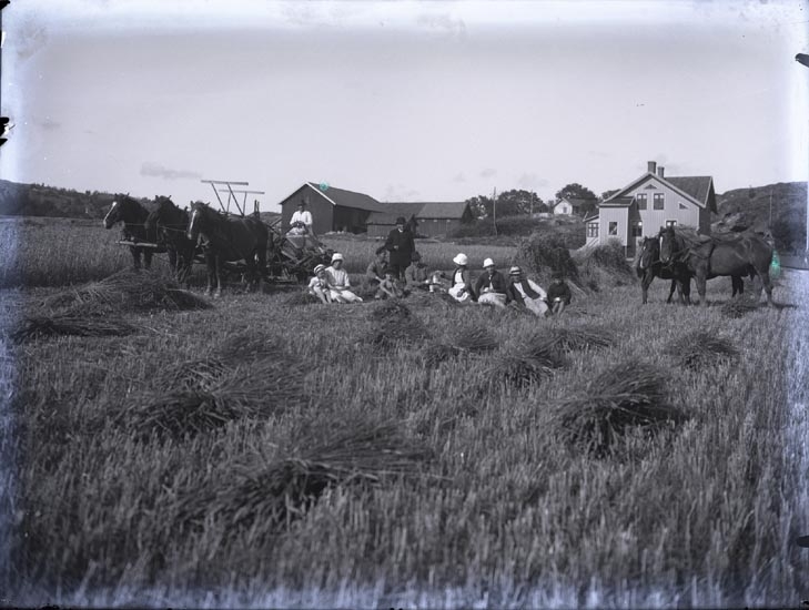 Hästarna Olga, Wanna och Björn framför självbindaren